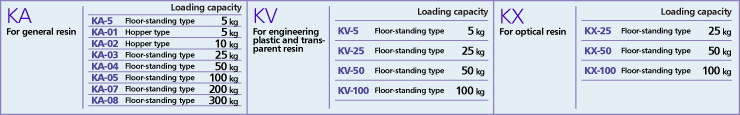 - The KA series is for general resins