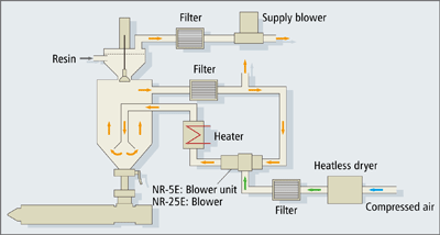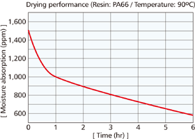 In terms of engineering plastic moldings require precision and stability, pressurized dehumidifying air circulation drying is far superior to conventional hot air drying.